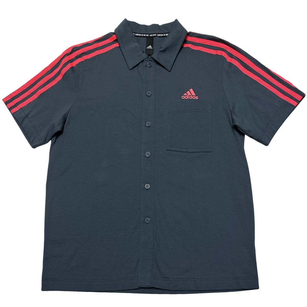 - adidas アディダス 半袖ボタンシャツ スリーストライプス Sサイズ相当
