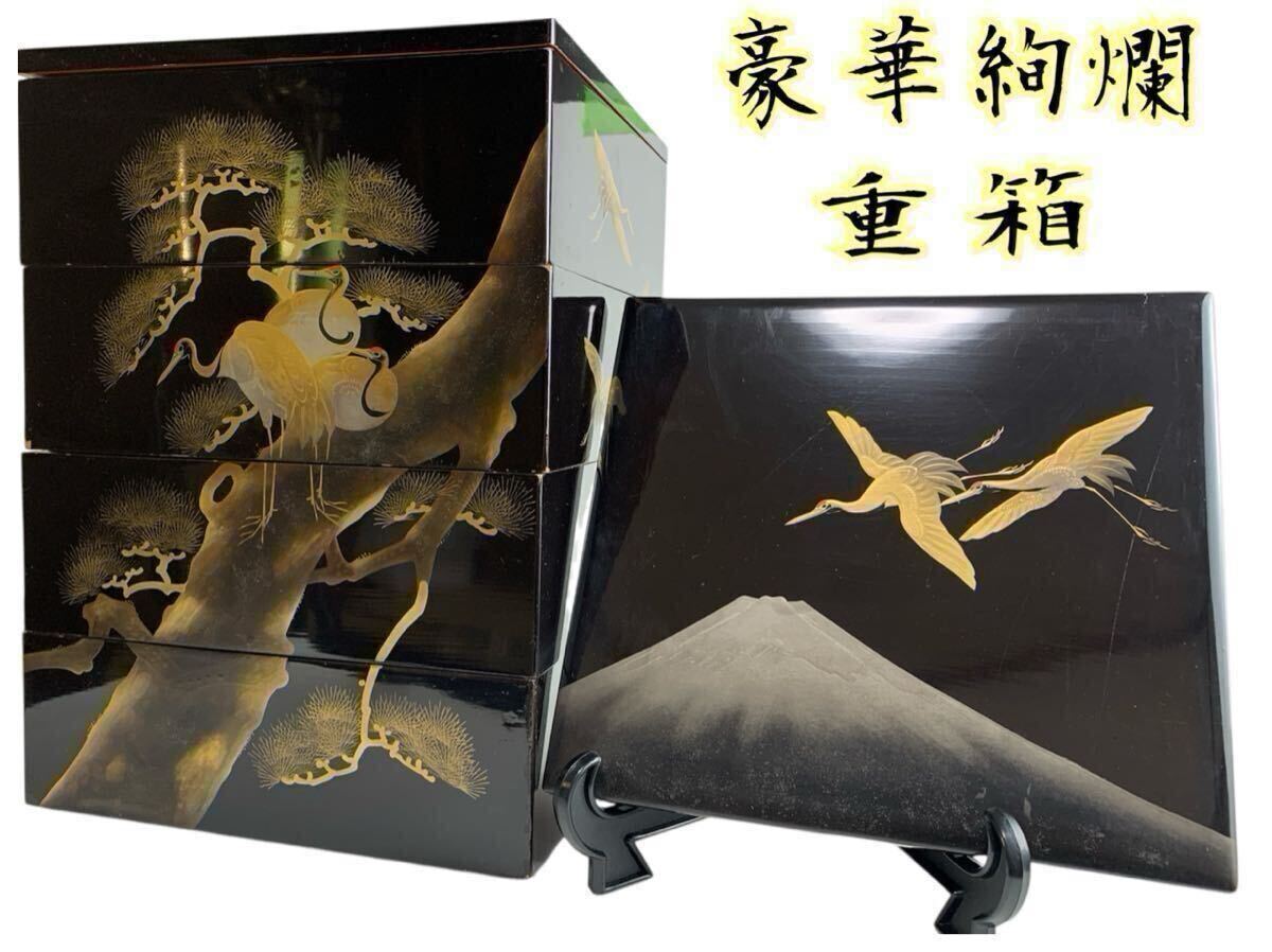 > ★高級重箱★重箱 4重箱 鶴 松 蒔絵 漆塗り 高さ34cm 時代物 古美術 豪華絢爛 中古 現状品 ★252★ee316