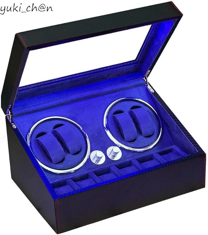 - ワインディングマシーン 4本巻き+6本収納 ウォッチワインダー 自動巻き時計ワインディングマシーン マブチモーター ブラック+グレー4+6T