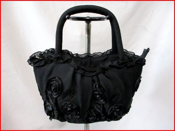 - フォーマルハンドバッグ 花モチーフ◇オーガンジー スパンコール BK W32cm