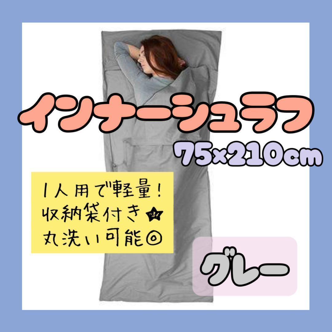 > インナーシュラフ 軽量 薄手 封筒型 グレー 1人用 75×210 cm 防災 車中泊 アウトドア キャンプ 登山 コンパクト 手洗可能