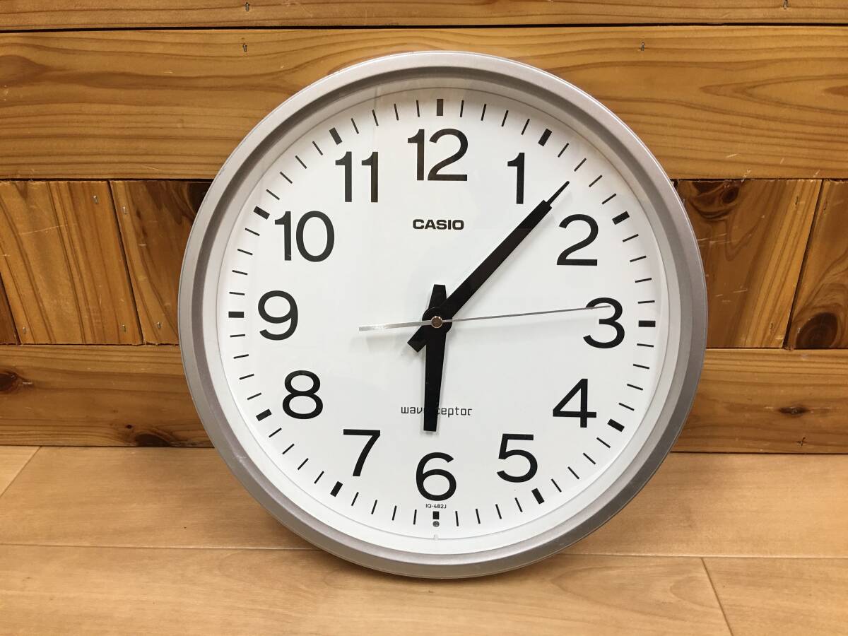 - A22798)CASIO WaveCeptor IQ-482J 壁掛け時計 シルバー 電波時計 中古動作品