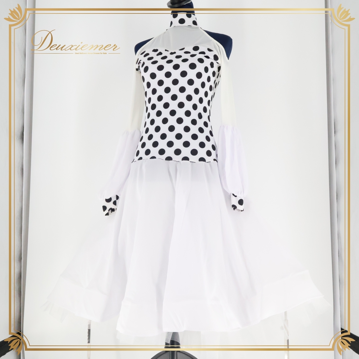 - 社交ダンス 衣装 スタンダードドレス ドレス スタンダード ワンピース ホワイト系 ブラック系 白 黒 ドット 水玉 軽い 薄い パーティ