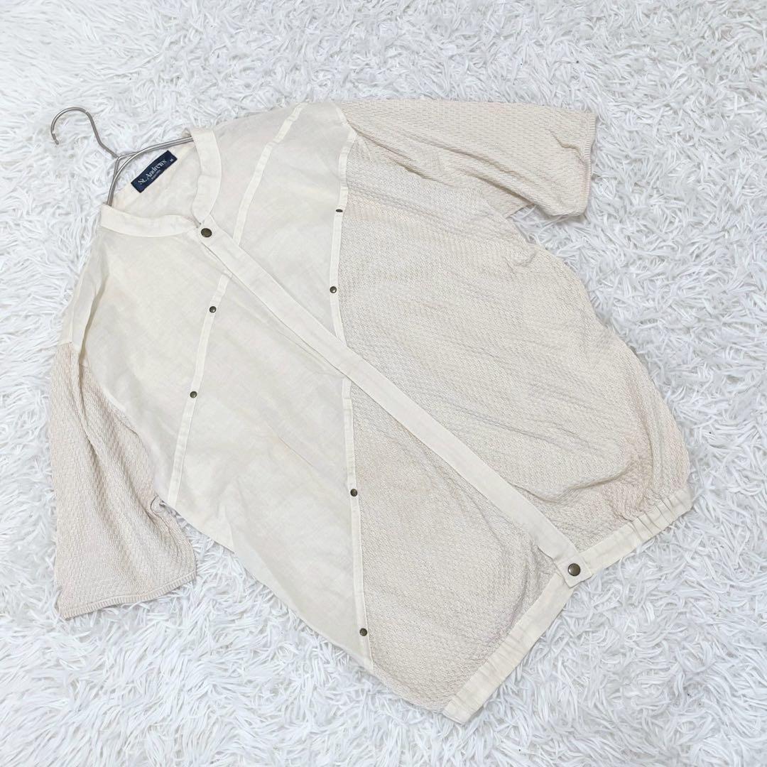- セントアンドリュース (M) 異素材ドッキング半袖シャツ ノーカラー リネン混