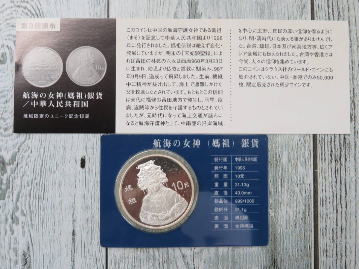 - 5.【泰星コイン】世界の大型銀貨コレクション 航海の女神(媽祖)銀貨 10元/中華人民共和国 1998年 ケース入り コレクション品