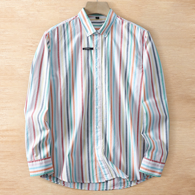 > A5801-3XL 新品 DCKMANY ウォッシュ カラーストライプ オックスフォード 綿100% 長袖シャツ メンズ ボタンダウン 春秋 レギュラーカラー