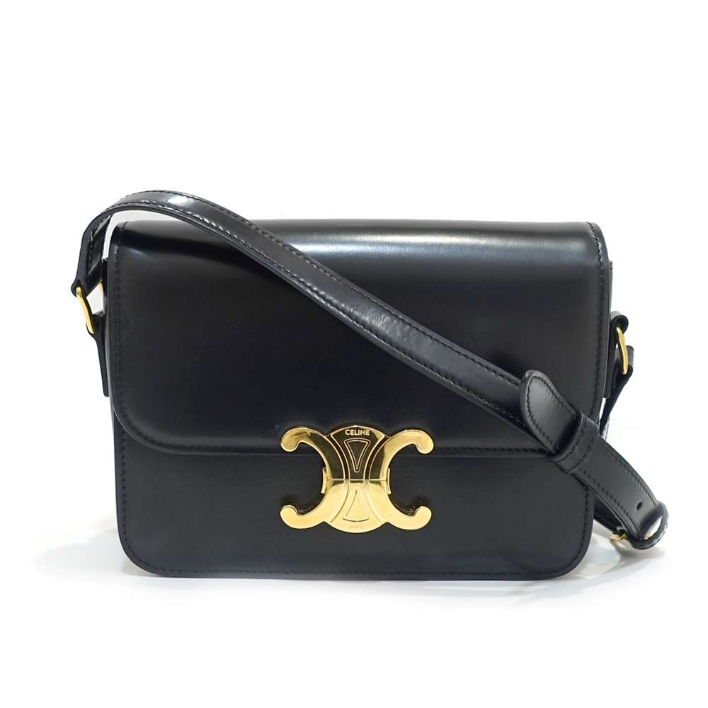 - 【栄】セリーヌ ティーン トリオンフ バッグ 188423 ショルダーバッグ レザー ブラック ゴールド金具 レディース 女性