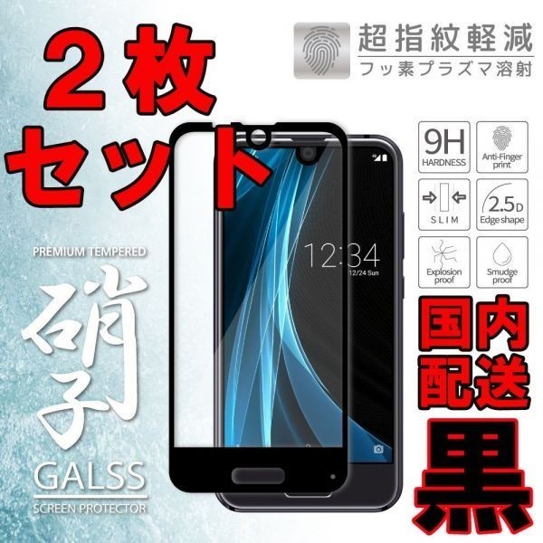 > 2枚セット★AQUOS R Compact フィルム 強化ガラス AQUOS R compact SHV41 /701SH フィルム 保護 3D 曲面 極高透過率9H 自動吸着 黒ブラック