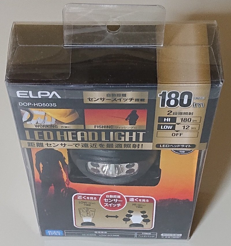 - 6369 未使用未開封 LEDヘッドライト DOP-HD503S ELPA 朝日電器 LED HEAD LIGHT 乾電池式 防沫形IPX4 最大180lm