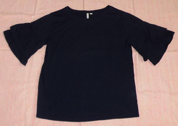 - 中古 HK WORKS LONDONの半袖カットソー L 紺 袖フリル