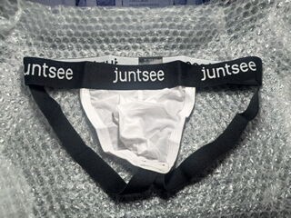 - juntsee製品、メンズビキニ、ジョックストラップ、フロントポーチホワイト、立体的フルシーム、M~Lサイズ、