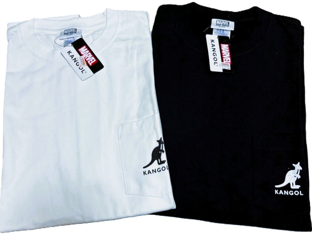 - 新品・2枚セット/L★KANGOL x MARVEL★限定生産コラボ半袖Tシャツ【カンゴール/マーベル】白/ホワイト・黒/ブラック●100%綿●ポケット付き