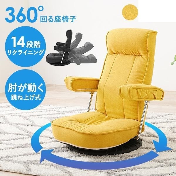 - 【送料無料】即決【限定品・新品】★高級360度回転ハイバック(肘付)座椅子【ファブリック】ディープイエロー