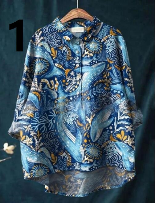 - 新入荷上質シャツ ブラウス 着痩せ プリント柄 トップス レディース長袖ゆったり大きいサイズ体型カバーチュニック部屋着M~3XL お色選択可