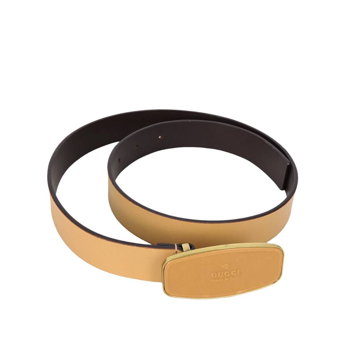 - 本物美品■グッチ■ベルト/ロゴプレートバックル/ベージュ/ブラウン/ゴールド/855201