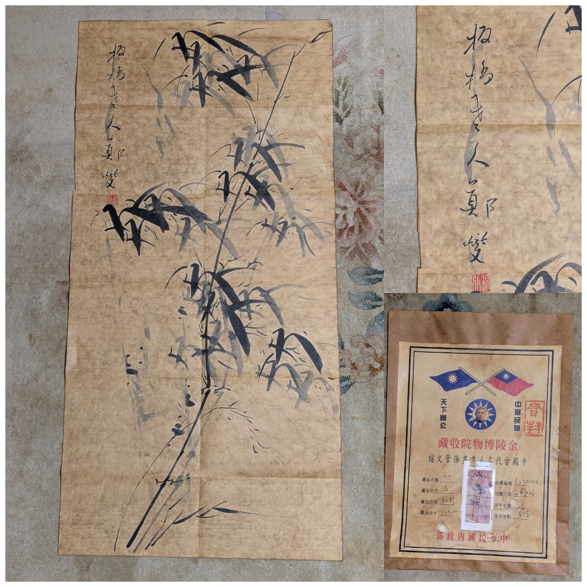 - 中華民國内政部 金陵博物院収蔵 中国古代名人書畫保管文档/竹 清時代 水彩画 書画 中華民国 掛軸 まくり