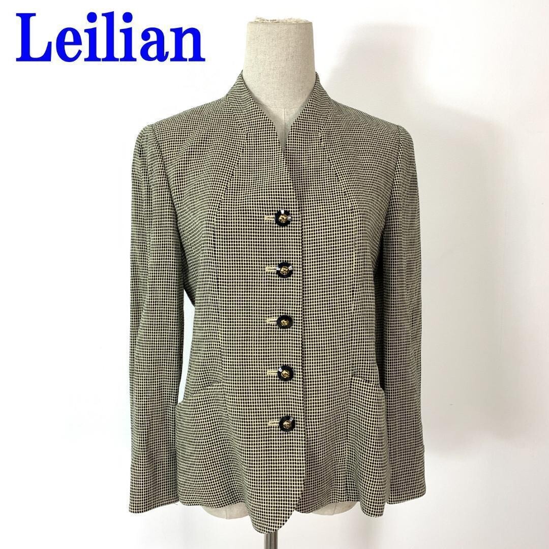 - レリアン ノーカラージャケット ベージュ ウール Leilian Erhardt 綿 ブラック チェックコットン 7 C3079