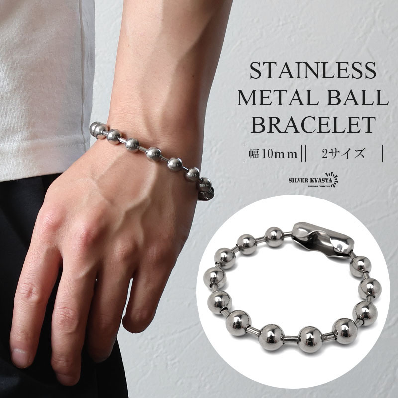 > (21.5cm) ステンレス ラージボールブレスレット チェーンブレスレット 大ぶり シルバー 10mm メンズ 金アレ対応