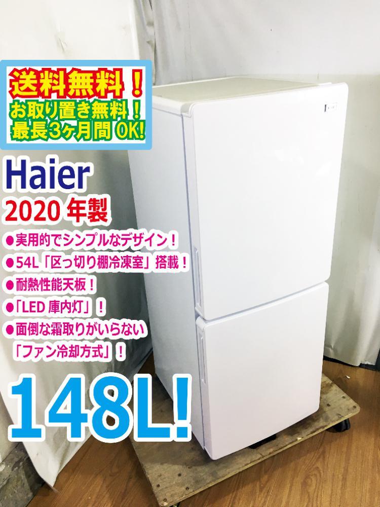 > ◆送料無料★2020年製★ 中古★Haier☆148L☆2ドア冷凍冷蔵庫☆右開き☆54L「区っ切り棚冷凍室」!!耐熱性能天板【◆JR-NF148B-W】◆B2U