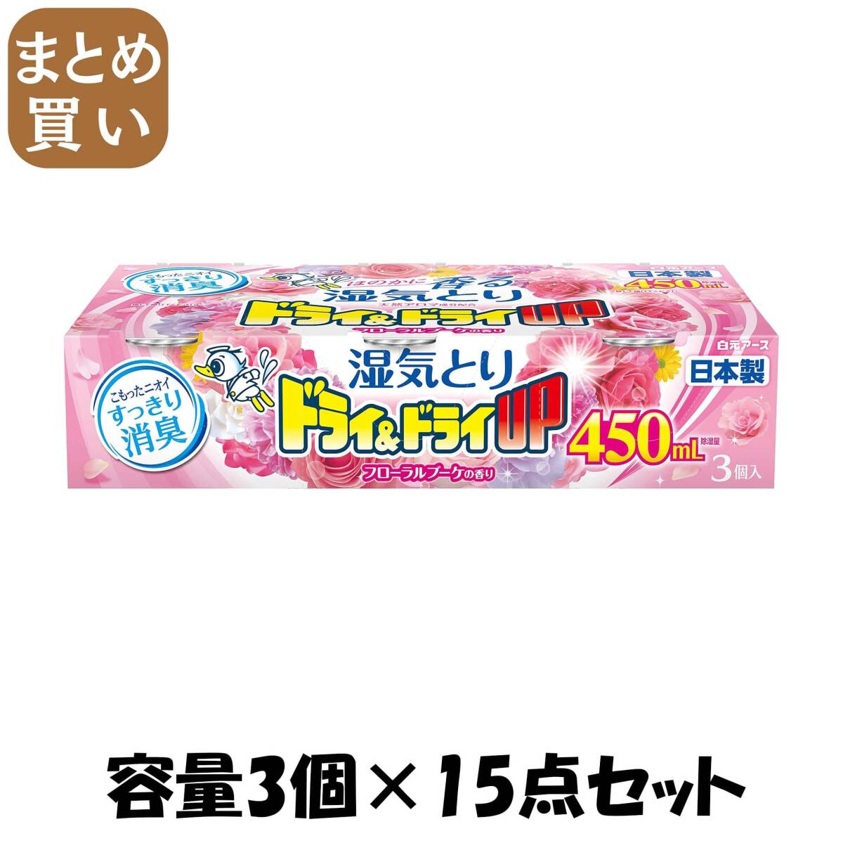 - 【まとめ買い】ドライ&ドライUP フローラルブーケの香り 450mL 容量3個×15点セット 白元アース 除湿剤