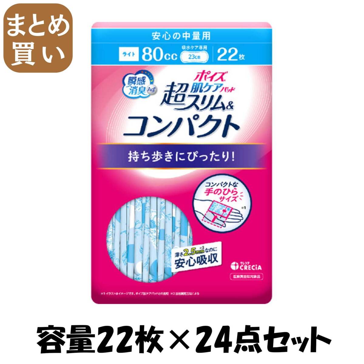- 【まとめ買い】ポイズ 肌ケアパッド 超スリム&コンパクト 安心の中量用 22枚 容量22マイ×24点セット生理用品