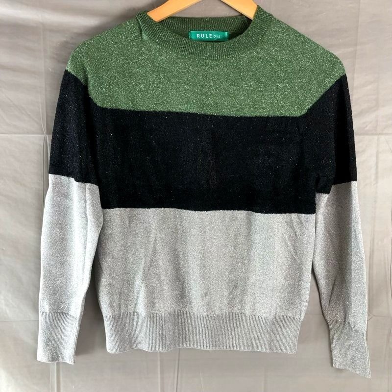 - ルールビス RULE bis ニット ラウンドネック ラメ糸 裾リブ 薄手 マルチカラー グリーン系 ブラック系 シルバー系 Sサイズ 2025071200164