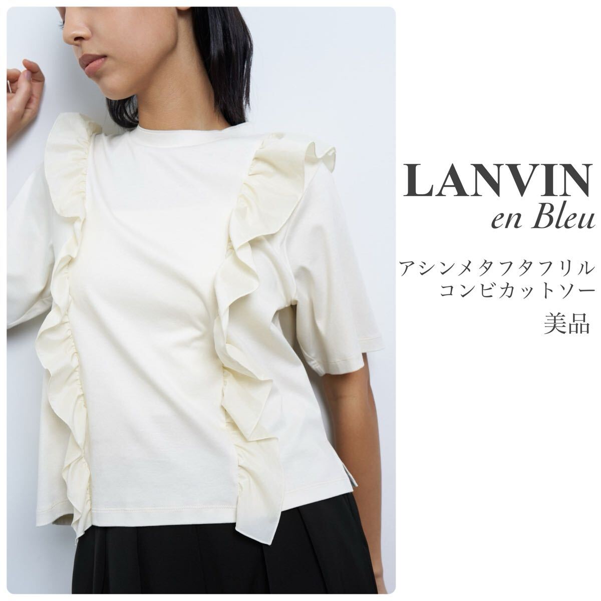 - LANVIN en Bleu【美品】アシンメタフタフリルコンビカットソー ベージュ オフホワイト Tシャツ 半袖 ランバンオンブルー
