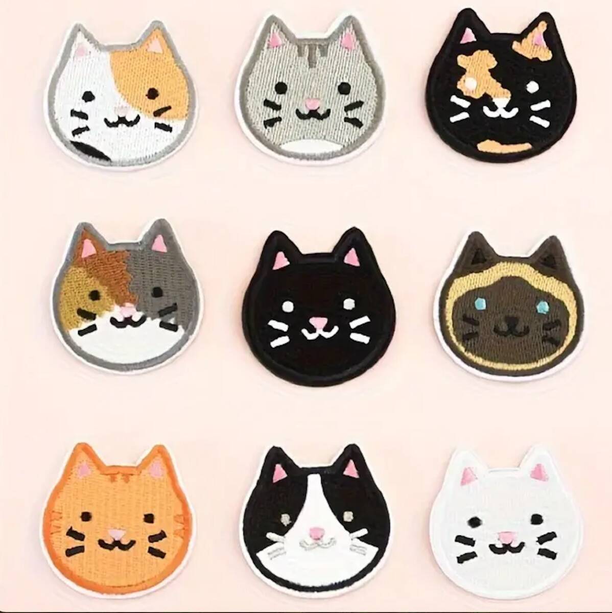 - 9枚セット アップリケ 猫の顔 アニマル ワッペン 刺繍 アイロン 手芸 かわいい 4cm おしゃれ 可愛い アイロン接着 ネコ ねこ 動物 t2076