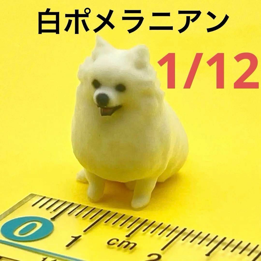 - 1/12 ミニチュア ポメラニアン白 犬 フィギュア 1/64より大 ペット 3Dフィギュア 完成品 ドールハウスに