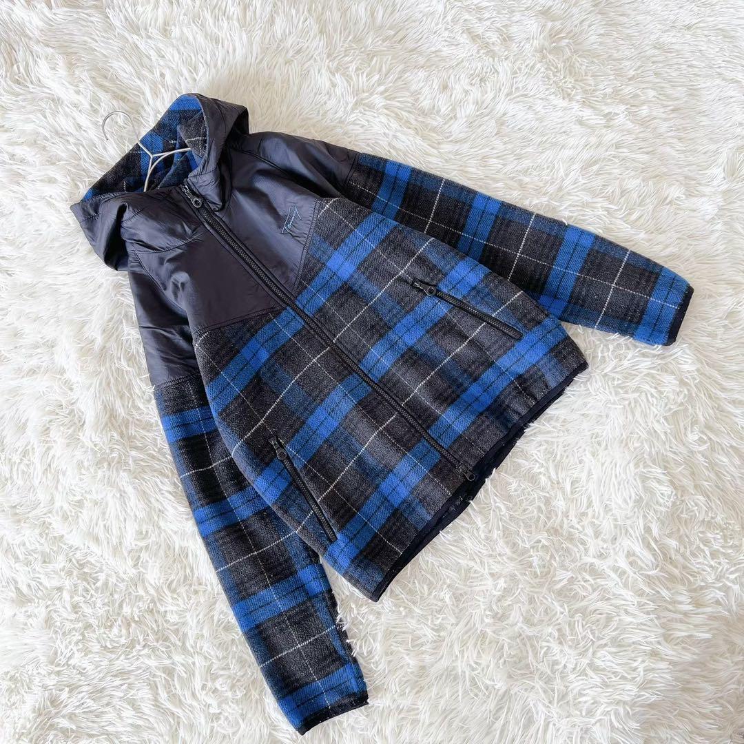- 《トミー》 (M) 異素材切替フーディージャケット チェック アメカジ 薄手