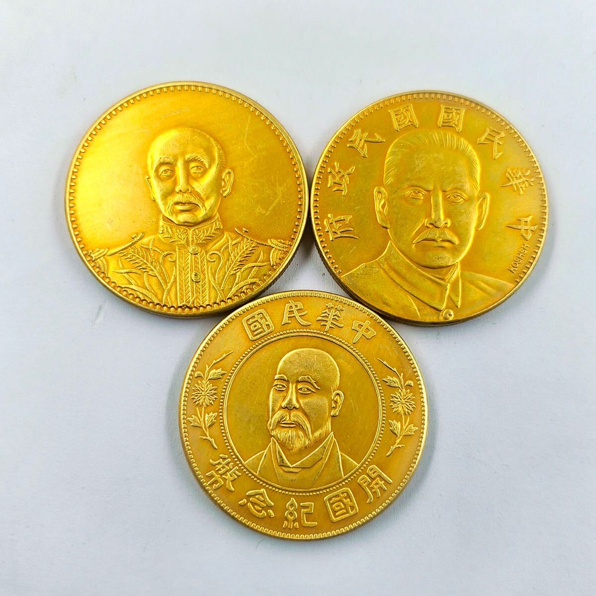 - お得!!! 壹圓 五十圓 中国 古銭 中華民国 3枚セット 人物記念硬貨 大型金貨 外国硬貨 貿易銀 コレクション 収蔵品