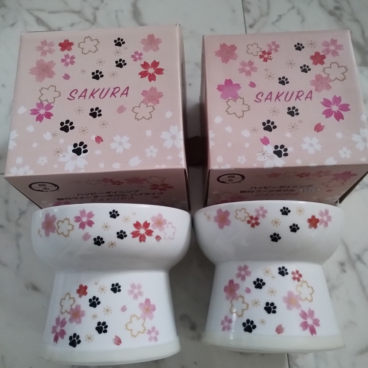 - 完売 猫壱 ハッピーダイニング 脚付きフードボウル&ウォーターボウル 限定柄 Sakura桜さくらサクラ 犬猫用飲食しやすい食器 電子レンジ可