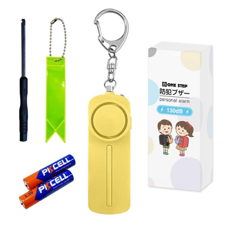 - 防犯ブザー 大音量 女性 小学 LEDライト 防水 130db 電池付き 反射板 キーホルダー 反射板テープ 3個セット イエロー
