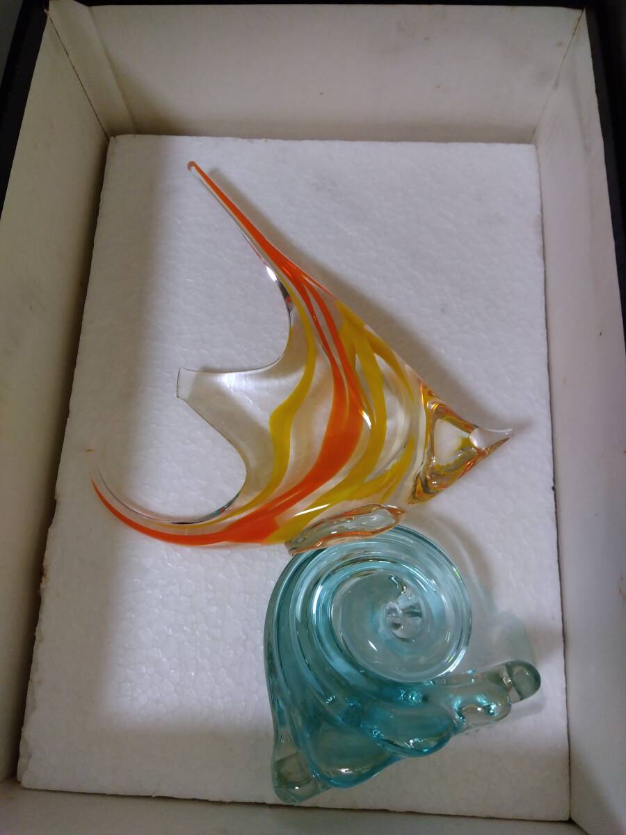 - マルテイグラス★マルティグラス★ガラス製 魚の置物★エンゼルフィッシュ★オレンジとブルー★ガラス工芸★高さ41㎝