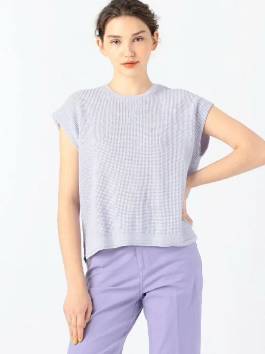 - トゥモローランドMACPHEE コットンポリエステルワッフル クルーネックプルオーバー パープル フレンチスリーブ Sサイズ