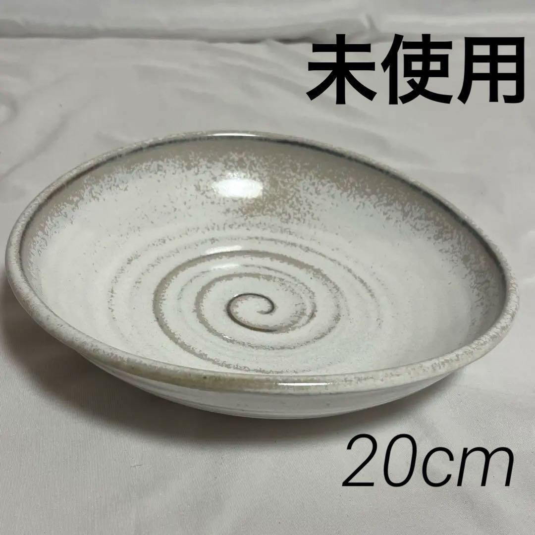 - 未使用 京焼 庵工房 白化粧 平鉢 20cm 中鉢 楕円 食器 和食器