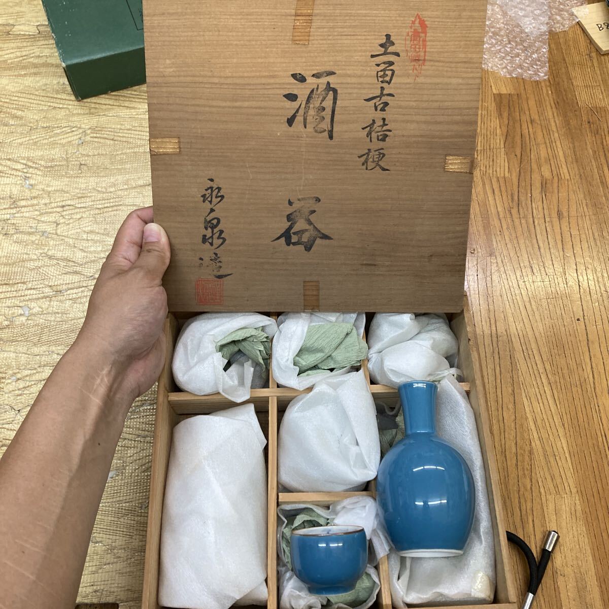 > B8-14 【蔵出/長期保管品】 永泉造 有田焼 土百古桔梗 酒器 共箱 お猪口 徳利