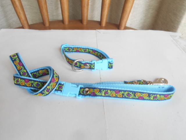 - 小型犬★ハンドメイド☆リード&カラーセット チロリアン ネイビー×水色 ~10kg 仮つなぎ可
