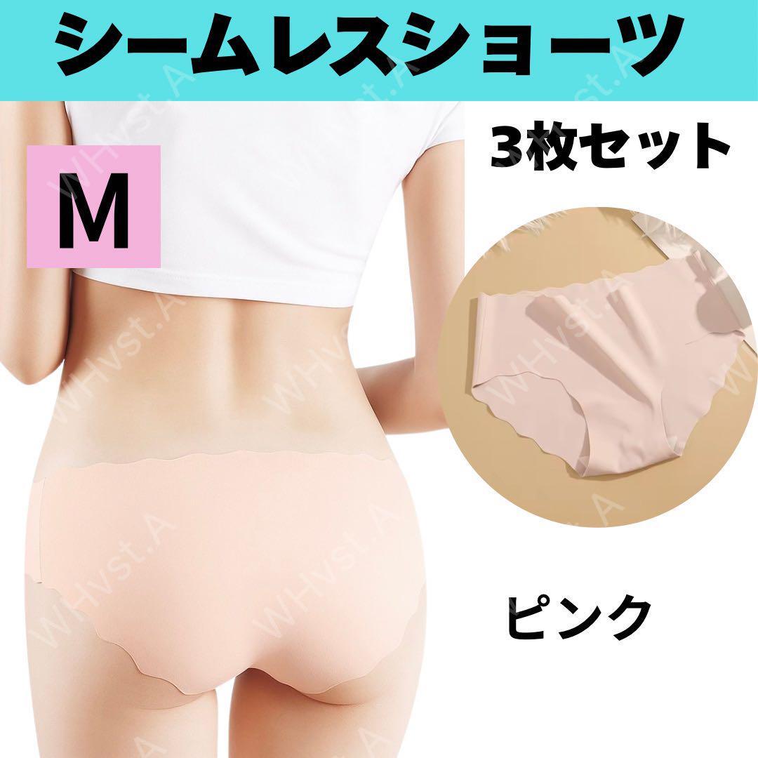 - Mサイズ 3枚 ピンク シームレスショーツ 波型 シームレス ショーツ