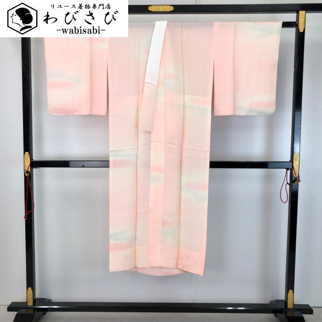 > 長襦袢 単衣 観世水 暈し模様 乙女色 半衿付 しつけ糸 J-325 着物 きもの kimono 和服 和装 中古 リサイクル着物 【送料無料】