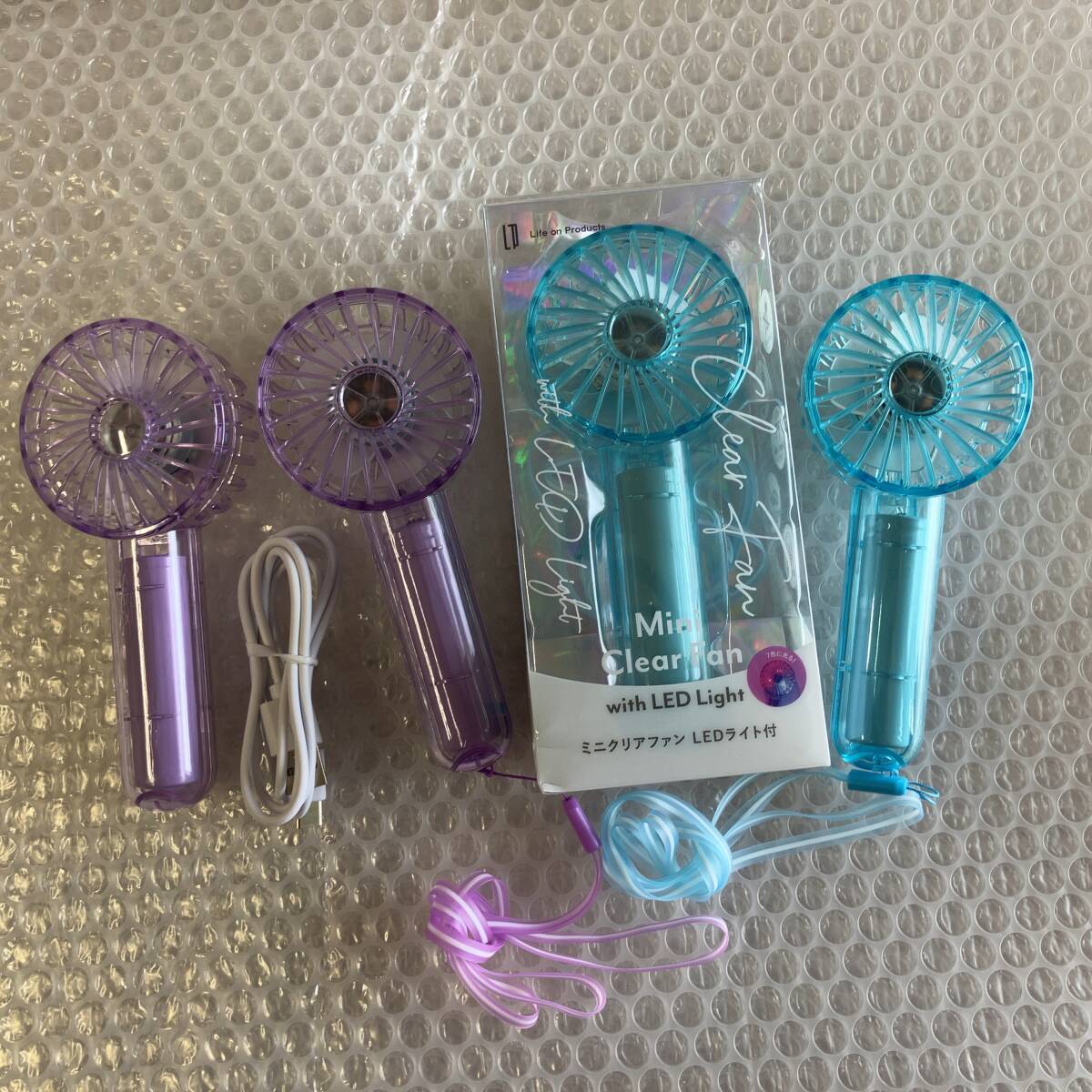 - 即決/ 未使用、4個まとめて/ライフオンプロダクツ Life on Products ミニクリアファン LEDライト付 LCAF002 ハンディファン 携帯扇風機
