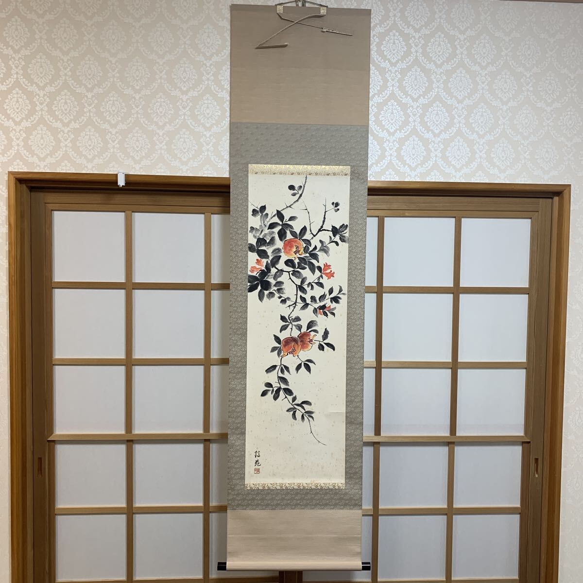 - 掛軸 模写 静物画ざくろ 紙箱あり No153