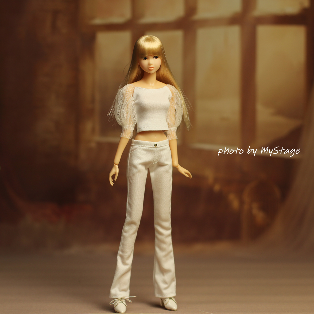 > 人形服msdr-25-4821白いオフショルダーネックTシャツとラッパーパンツ(momoko用)