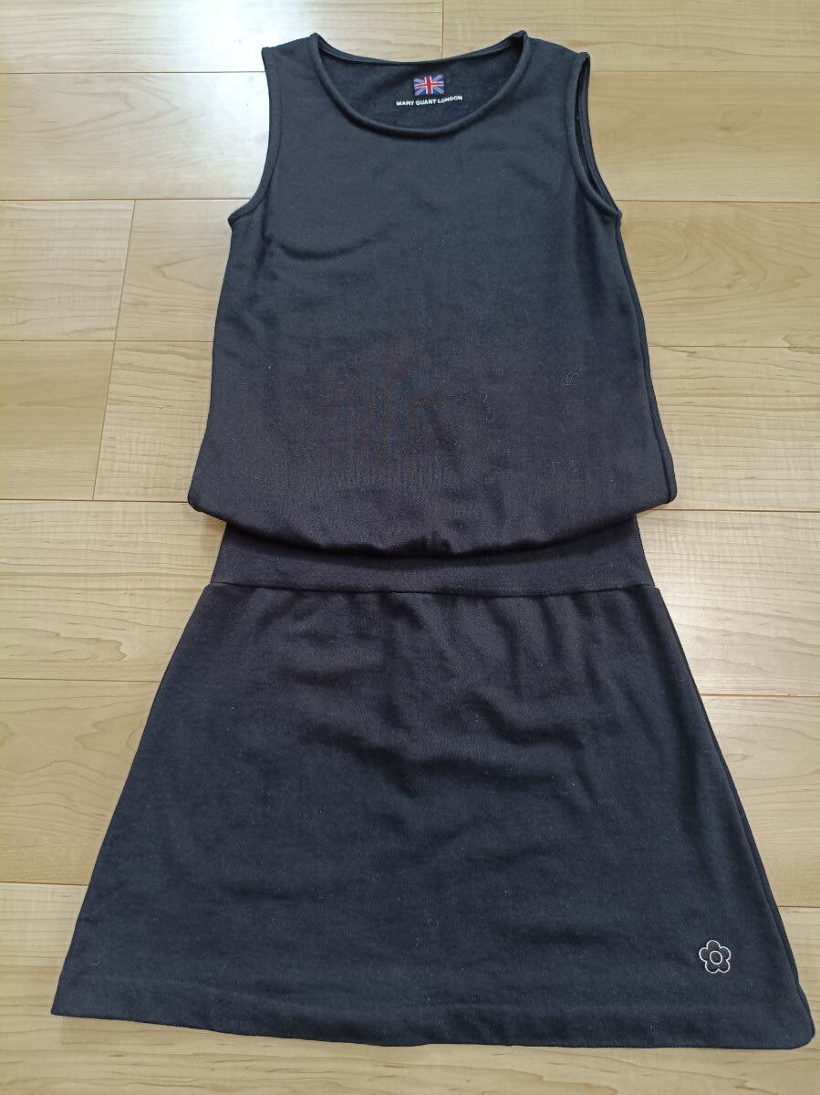 > マリークワント MARYQUANT★パイル生地 ノースリーブワンピース チュニック 黒 M プールや海にぴったり 夏物