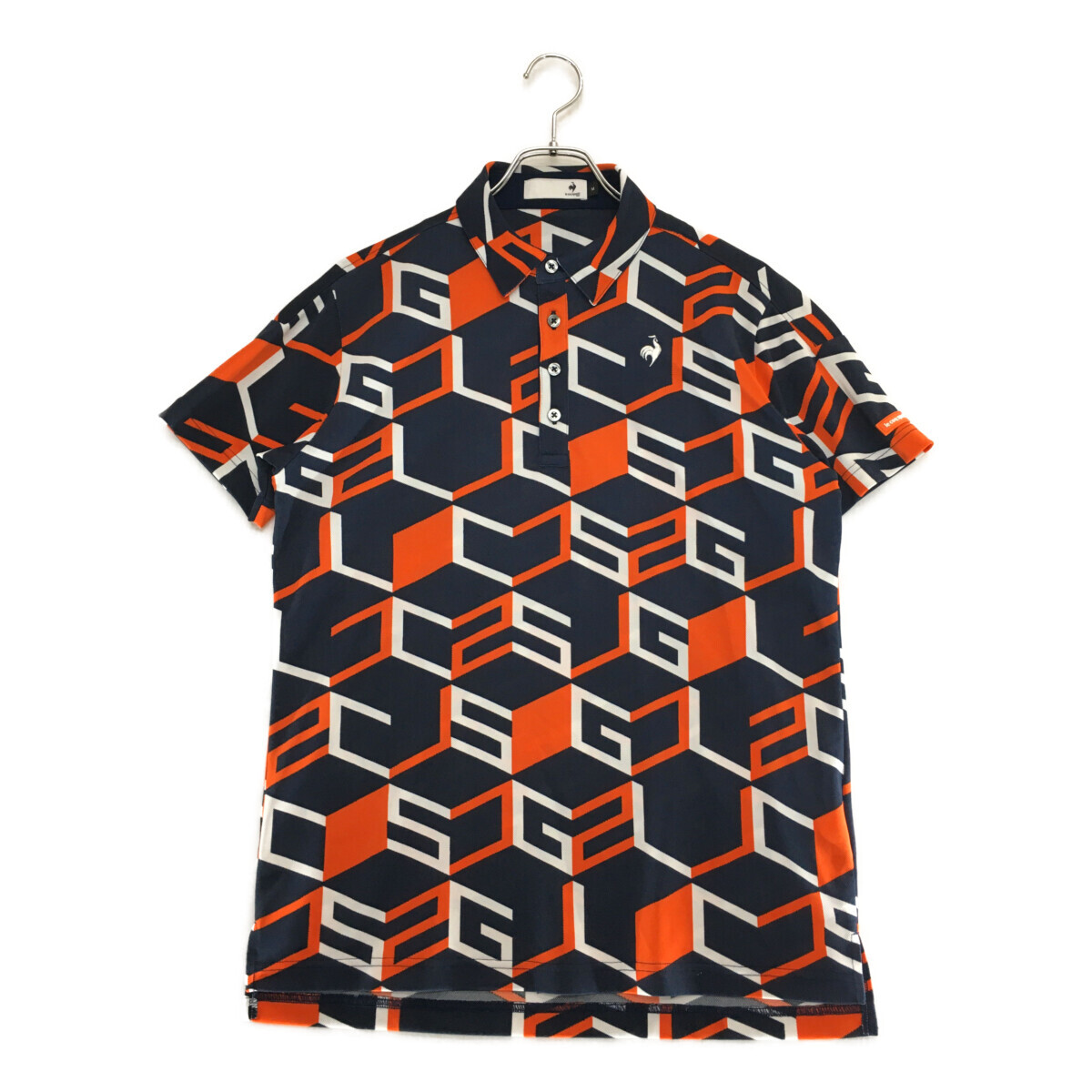 > coco 中古【SALE】ルコックスポルティフ le coq sportif メンズ 半袖ポロシャツ M 紺系 ネイビー 総柄 レターパックプラス発送可 114488