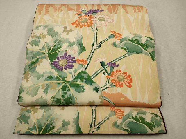 - 平和屋着物◎アンティーク 大正ロマン 全通柄京袋帯 草花文 正絹 逸品 CAAV0248qe