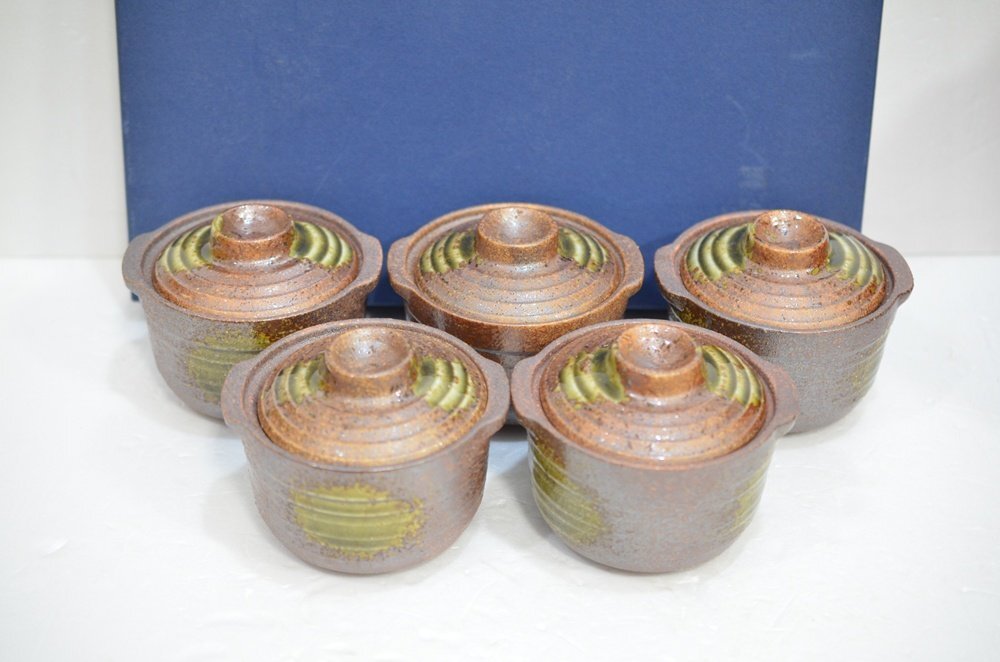 HO1 陶器 焼き物 蓋付き碗 茶碗蒸し 5客セット