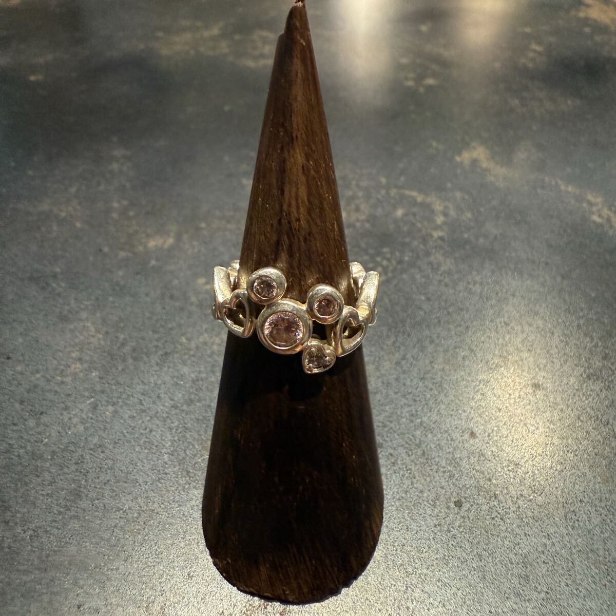 - SILVER925 HEART MOTIF PINK STONE DESIGN RING/シルバー/リング