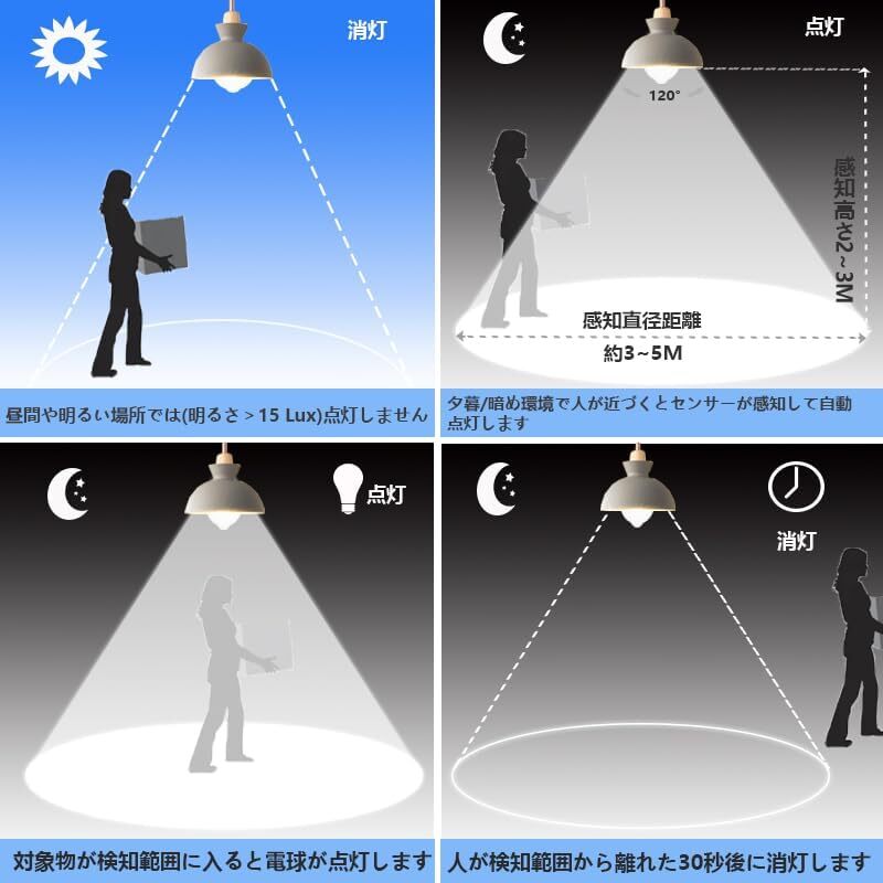 - E17 7W 人感 明暗センサー付 LED電球 E17口金 60W形相当 800LM 自動点灯 消灯 人感電球 (60mm径) A60 玄関 トイレ洗面所 廊下 階段 昼光色