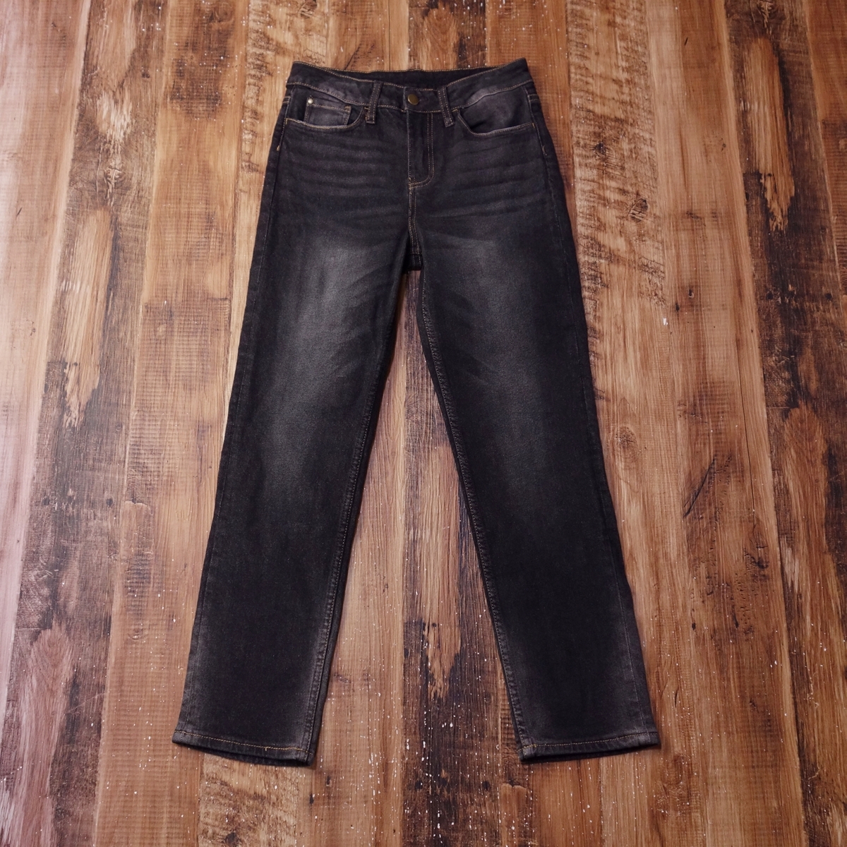 > 美品 Give Re-Collection ストレートデニムパンツ レディース ウォッシュ加工 美脚 フルレングス Sサイズ ウォッシュドブラック QB2